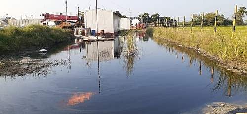கச்சா எண்ணெய் கழிவு தேங்கியுள்ள வயல்.