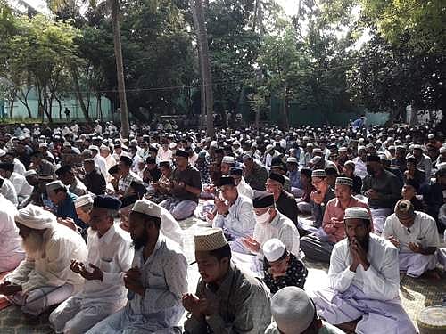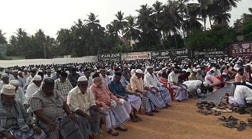 பொதக்குடி கால்பந்தாட்ட மைதானத்தில் தொழுகை.