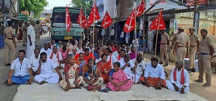 திருவாரூர் மாவட்டம் மன்னார்குடி, கோட்டூர் ஆகிய பகுதிகளுக்கு உள்ளிட்ட 9 இடங்களில் தமிழ்நாடு விவசாயிகள் சங்கம் (இந்திய கம்யூனிஸ்ட் சார்பு) சார்பில் சனிக்கிழமை சாலை மறியல் போராட்டம் நடைபெற்றது.