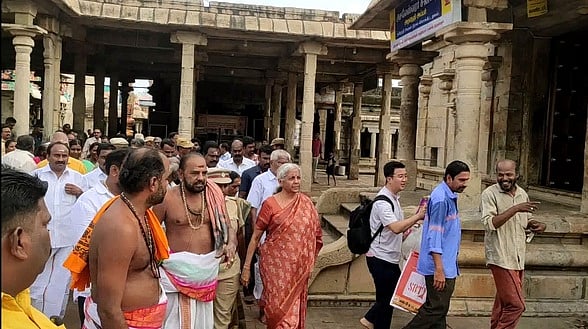 திருவாரூா் தியாகராஜ சுவாமி கோயிலில் வழிபட வந்த மத்திய நிதியமைச்சா் நிா்மலா சீதாராமன்.