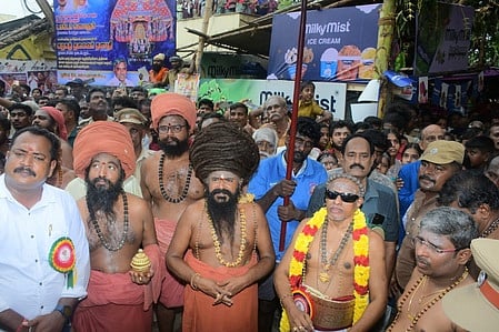 தேரோட்ட விழாவில் பங்கேற்ற தருமபுரம் ஆதீனம் ஸ்ரீலஸ்ரீ மாசிலாமணி தேசிக ஞானசம்பந்த பரமாசாரிய சுவாமிகள், வேளாக்குறிச்சி ஆதீனம் ஸ்ரீலஸ்ரீ சத்யஞான மகாதேவ தேசிக பரமாசாரிய சுவாமிகள்.