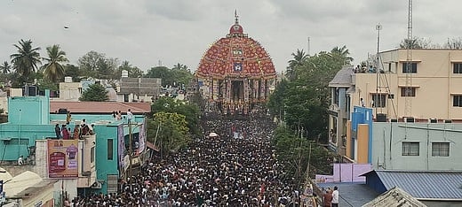 மக்கள் வெள்ளத்துக்கு மத்தியில் ஆடி அசைந்தபடி ஆழித்தோ்