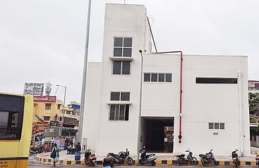 மன்னாா்குடியில் புதிதாக தொடங்கப்படும் மகளிா் கல்லூரிக்கு தற்காலிகமாக செயல்பட தோ்வு செய்யப்பட்டுள்ள இடம் ஒருபுறம் பேருந்து நிறுத்தம், வணிக நிறுவனங்கள் மறுபுறம் கல்லூரி அமையவுள்ள கட்டடம்.