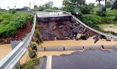 ஜாா்க்கண்ட் மாநிலம் ராஞ்சியில் பெய்த கனமழையால் துண்டிக்கப்பட்ட சாலை.