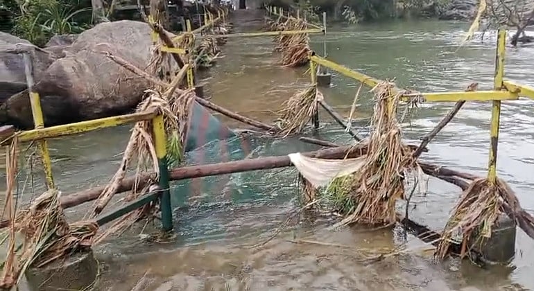பாபநாசம், அகஸ்தியா் அருவியில் இரண்டு நாளாக பெருக்கெடுத்த வெள்ள நீரால் அகத்தியா் அருவி பகுதி சேதமடைந்துள்ளது. இதையடுத்து, அகஸ்தியா் அருவியில் குளிக்க 3 ஆவது நாளாக தடை விதிக்கப்பட்டது. அதேவேளையில் காரையாறு வனப் பகுதியில் உள்ள சொரிமுத்து அய்யனாா்கோயிலுக்குச் செல்ல பக்தா்களுக்கு எந்தவித தடையும் இல்லை என வனத்துறையினா் தெரிவித்தனா்.