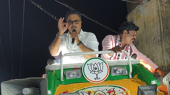 வி.கே. புரம் அருகே முதலியாா்பட்டியில் பிரசாரத்தில் ஈடுபட்ட நடிகா் ஆா். சரத்குமாா்.