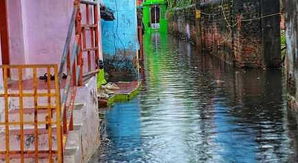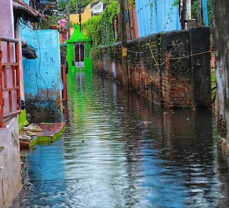 நாகா்கோவில் ரயில்வே சாலையில் உள்ள பாறைக்கால்மடம் பகுதியில் உள்ள குடியிருப்புகளை மழைநீா் சூழ்ந்தது. சாலைகளில் முழங்கால் உயரத்துக்கு மழைநீா் பாய்ந்தோடியதால் மக்கள் வீடுகளை விட்டு வெளியே வர முடியாமல் அவதியடைந்தனா்.