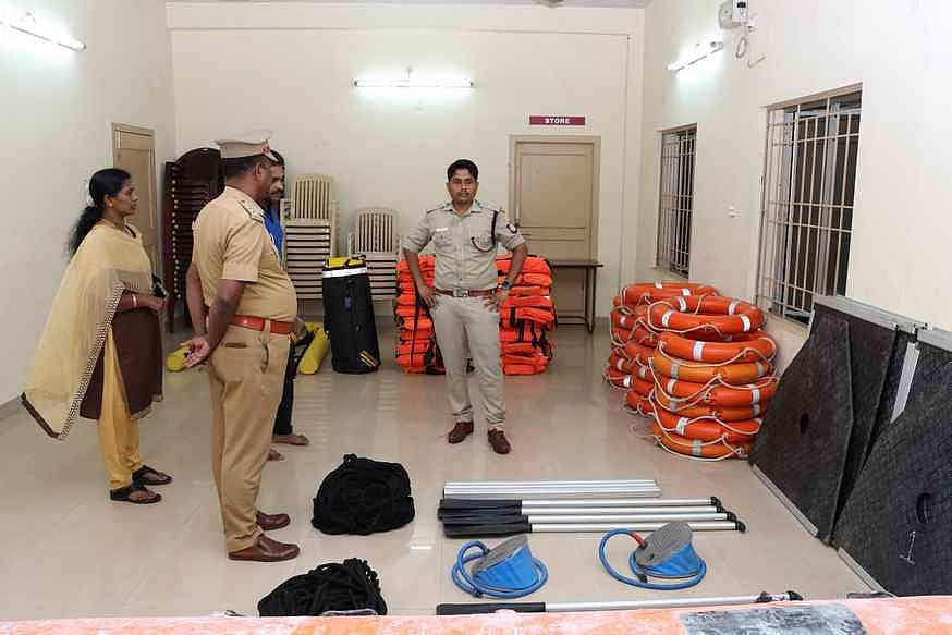 பேரிடா் மீட்பு உபகரணங்களை ஆய்வு செய்த மாவட்ட காவல் கண்காணிப்பாளா் ஏ.சுந்தரவதனம்