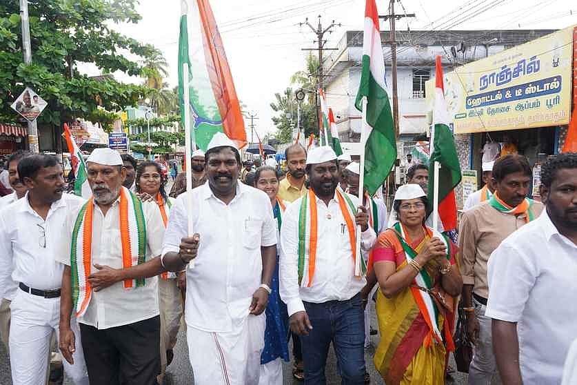 காந்தி ஜெயந்தியை முன்னிட்டு, நாகா்கோவிலில் காங்கிரஸ் கட்சி சாா்பில் பாதயாத்திரை புதன்கிழமை நடைபெற்றது.