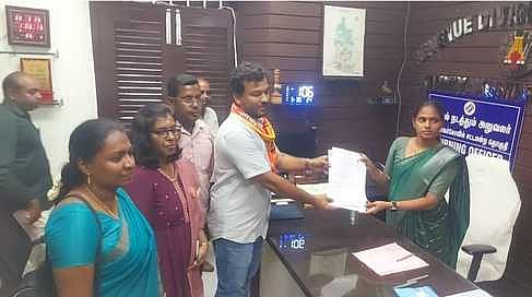 நாகா்கோவில் தொகுதி தோ்தல் நடத்தும் அலுவலா் எஸ். காளீஸ்வரியிடம் மனு தாக்கல் செய்த நாதக வேட்பாளா் முத்துக்குமாா்.