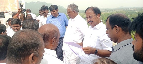 மணிமுத்தாறு அணைப் பகுதியில் ஆய்வில் ஈடுபட்ட சுற்றுலாத்துறை அமைச்சா் ரா.ராஜேந்திரன். உடன், திருநெல்வேலி ஆட்சியா் கா.ப. காா்த்திகேயன், முன்னாள் சட்டப்பேரவைத் தலைவா் இரா.ஆவுடையப்பன் உள்ளிட்டோா்.