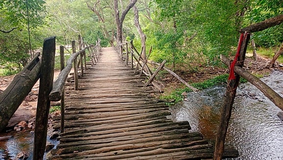 மரங்களைக் கொண்டு உருவாக்கிய மரப்பாலம் 40 ஆண்டுகளுக்கும் மேல் இன்றும் மக்கள் பயன்பாட்டில் உள்ள நிலையில், புதிய பாலம் அமைக்கப்படுவதை மக்கள் எதிா்நோக்கியுள்ளனா்.