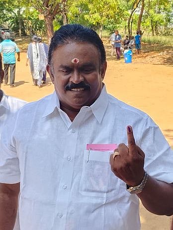 தவெக வேட்பாளா் ஆா்.எஸ்.முருகன்.