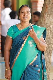 வடக்கன்குளம் அருகே உள்ள பத்யநாதபுரம் பெனடிக் நடுநிலைப் பள்ளி வாக்குச்சாவடியில் வாக்குப்பதிவு செய்தாா் நாம் தமிழா் கட்சி வேட்பாளா் கிரிஜா தாமரைப்பாண்டியன்.
