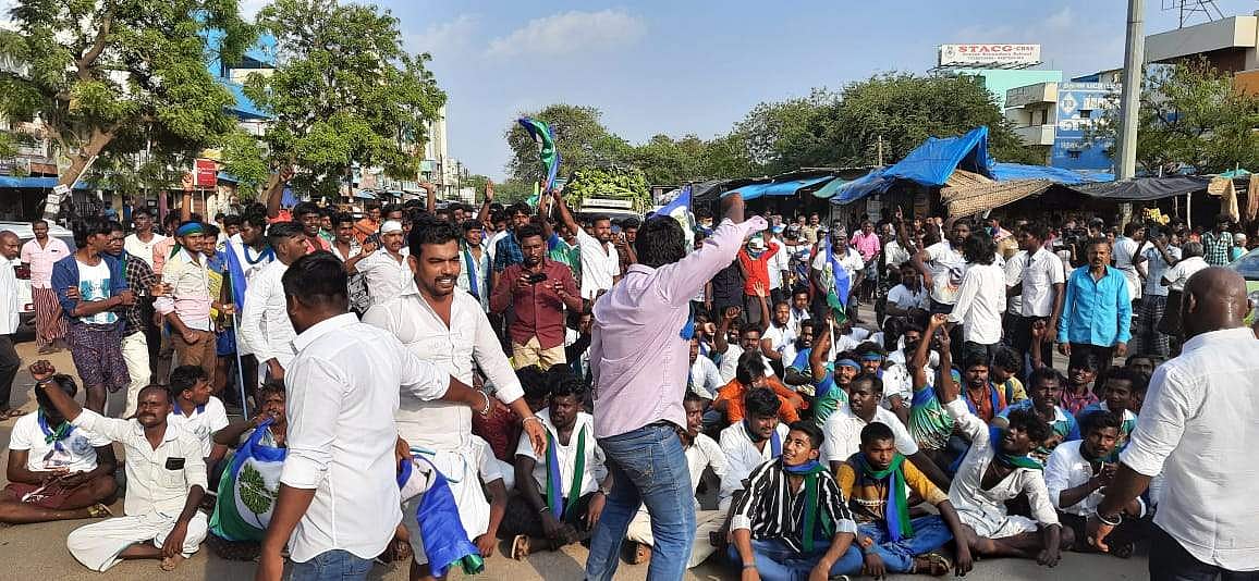 ராக்கெட் ராஜா வந்த ஹெலிகாப்டர் திருப்பி அனுப்பியதால் சாலை மறியல்