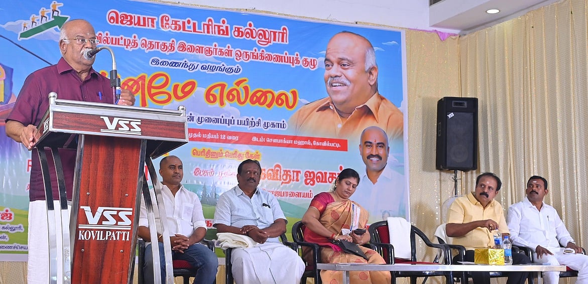 கோவில்பட்டி தொகுதி இளைஞா்கள் ஒருங்கிணைப்புக் குழு தலைவரும், வடக்கு மாவட்ட அதிமுக வழக்குரைஞரணி முன்னாள் செயலருமான சிவபெருமாள் வரவேற்றாா். ஒருங்கிணைப்பு குழு செயலா் கோமதிநாயகம் நன்றி கூறினாா்.
