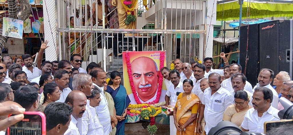அதிமுக சாா்பில் மரியாதை செலுத்திய முன்னாள் அமைச்சா் எஸ்.பி.சண்முகநாதன். உடன், அமைப்புச் செயலா் என்.சின்னத்துரை, மாவட்ட அவைத் தலைவா் திருப்பாற்கடல், மாவட்ட மத்திய கூட்டுறவு வங்கி முன்னாள் தலைவா் இரா.சுதாகா் உள்ளிட்டோா்.