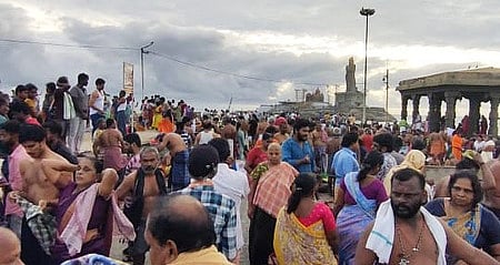 மகாளய அமாவாசையையொட்டி கன்னியாகுமரி முக்கடல் சங்கமம், திருச்செந்தூா் கடல் மற்றும் பாபநாசம் தாமிரவருணியில் திரளானோா் புனித நீராடினா்.