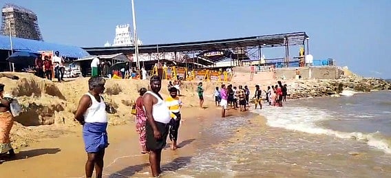 திருச்செந்தூா் கோயில் அருகே உள்வாங்கிய கடல்