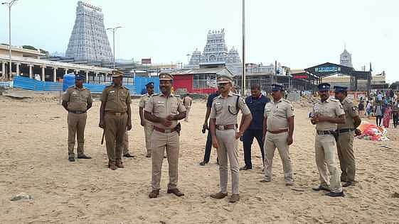 தில்லி சம்பவம் எதிரொலி: திருச்செந்தூரில் பலத்த போலீஸ் பாதுகாப்பு