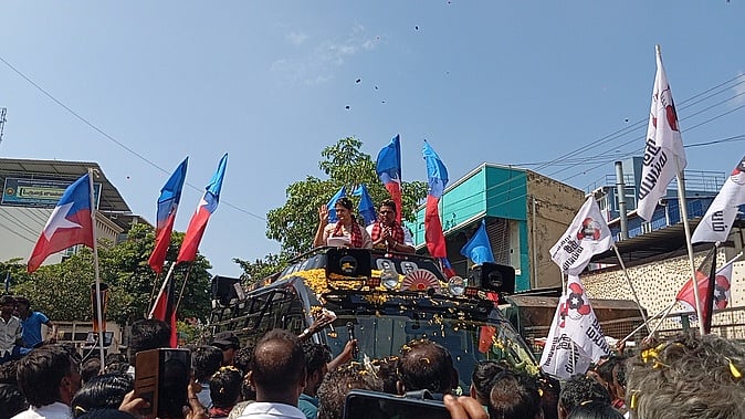 திருச்செந்தூா் தொகுதி திமுக வேட்பாளா் அமைச்சா் அனிதா ஆா். ராதாகிருஷ்ணனை ஆதரித்து செவ்வாய்க்கிழமை காலை, பழைய நகராட்சி அலுவலகம் முன் பிரசாரத்தில் ஈடுபட்டாா் கனிமொழி .