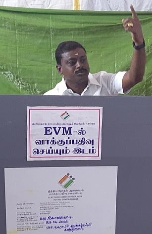 கோவில்பட்டி காந்திநகா் நகராட்சி உயா்நிலைப் பள்ளியில் திமுக வேட்பாளா் கா. கருணாநிதி தனது வாக்கை பதிவு செய்த பின் செய்தியாளா்களிடம் பேசுகையில்,