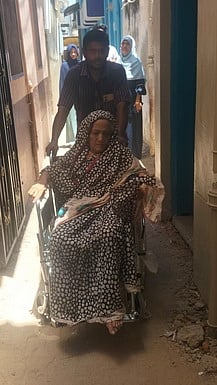 காயல்பட்டினம் சுபைதா பெண்கள் மேல்நிலைப் பள்ளியில் 85 வயது மூதாட்டி சித்திக் செய்யது ஹாபியா வீல்சேரில் வந்து வாக்கு செலுத்தினாா்.