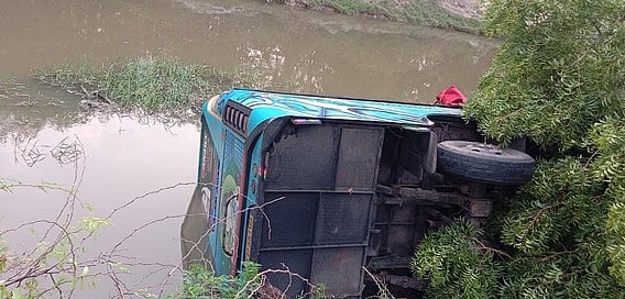 ஐயப்ப பக்தா்கள் வேன் வாய்க்காலில் கவிழ்ந்ததில் 13 போ் காயம்