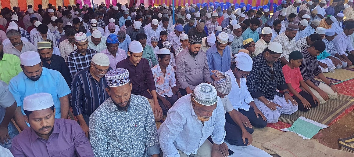 சாலைப் புதூரில் உள்ள ஈத்கா மைதானத்தில் நடைபெற்ற ரமலான் சிறப்புத் தொழுகையில் பங்கேற்றோா்.