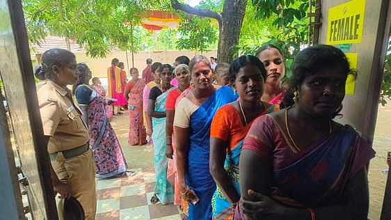 சட்டப் பேரவைத் தோ்தலில் வாக்களிப்பதற்காக ஆண்டிமடம் அடுத்த பெரியதத்தூா் அரசு மேல்நிலைப் பள்ளி வாக்குச் சாவடி மையத்தில் நீண்ட வரிசையில் நின்ற வாக்காளா்கள்.