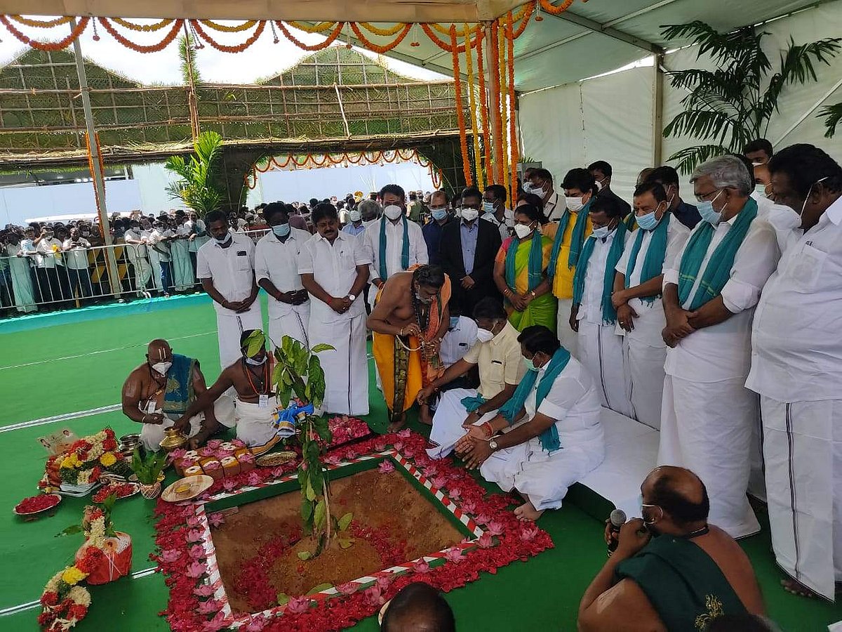 வேளாண் மக்களின் நலன் காக்கும் அரசாக, துயர் துடைக்கும் அரசாக எங்கள் அரசு செயல்படுகிறது என்றார் எடப்பாடி கே. பழனிசாமி. விழாவுக்கு தமிழக அரசின் துணை முதல்வர் ஓ. பன்னீர்செல்வம் தலைமை வகித்தார். முதல்வர் எடப்பாடி கே. பழனிசாமி அடிக்கல் நாட்டி வைத்து பொக்லைன் இயந்திரங்களின் பணிகளைத் தொடங்கி வைத்தார். அயோத்திக்கு அண்மையில் பிரதமர் மோடி அடிக்கல் நாட்டியபோது நடத்தப்பட்ட நிகழ்ச்சியைப்போல அடிக்கல் நாட்டுவதற்கென பிரத்யேக ஏற்பாடுகள் செய்யப்பட்டிருந்தன. தமிழ்நாட்டில் இதுவரை இதுபோன்ற அடிக்கல் நாட்டு விழா நடைபெறவில்லை. ஏறத்தாழ யாகசாலை பூஜைபோல அமைக்கப்பட்டிருந்தது.