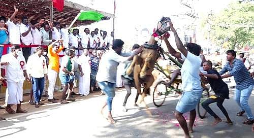 புதுக்கோட்டை மாவட்டம், கீரனூரில் தி.மு.க.சார்பில் முதன் முறையாக குதிரை வண்டி, மாட்டு வண்டி எல்லை பந்தயம் நடைபெற்றது.