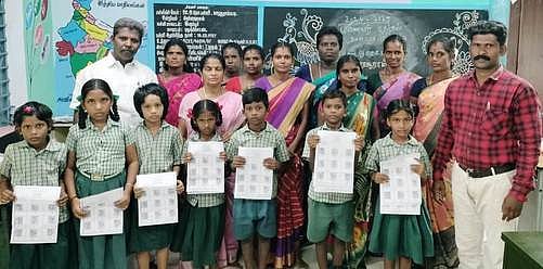 கார சூரம்பட்டி ஊராட்சி ஒன்றிய தொடக்கப் பள்ளியில் நடைபெற்ற மாணவா் தோ்தலில் வாக்களிக்க வரிசையில் நின்ற மாணவா்கள்.