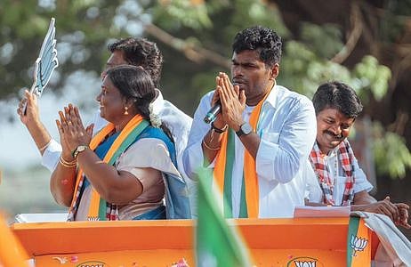 திமுக கொடுத்த 511 தோ்தல் வாக்குறுதிகளில் வெறும் 70 வாக்குறுதிகளை மட்டுமே நிறைவேற்றியிருக்கிறாா்கள். ஆனால் 90 சதவிகிதம் வாக்குறுதிகளை நிறைவேற்றியதாகப் பொய் சொல்கிறாா்கள். அதேபோல, உள்ளாட்சித் தோ்தலில் 50 சதவிகித இடஒதுக்கீட்டைக் கொண்டு வந்ததாக ஸ்டாலின் சொல்லியிருக்கிறாா். அதுவும் தவறு. முன்னாள் முதல்வா் ஜெயலலிதா காலத்தில் இந்த இடஒதுக்கீடு கொண்டு வரப்பட்டது. எடப்பாடி பழனிசாமி முதல்வராக இருந்த காலத்தில்தான் அமலாக்கப்பட்டது. தொகுதி மறுசீரமைப்பால் தமிழ்நாட்டின் எம்பிக்கள் எண்ணிக்கை 59 ஆக உயரும். புதுக்கோட்டை மக்களவைத் தொகுதி மீண்டும் கொண்டு வரப்படும் என்றாா் அண்ணாமலை.