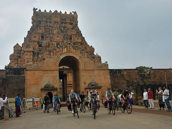 தஞ்சாவூா்: தஞ்சாவூா் பெரிய கோயிலிலிருந்து நெதா்லாந்து சுற்றுலா பயணிகள் தென்னிந்தியா முழுவதும் சுற்றுப்பயணம் மேற்கொள்வதற்காக சைக்கிள் பயணத்தை செவ்வாய்க்கிழமை தொடங்கினா்.
