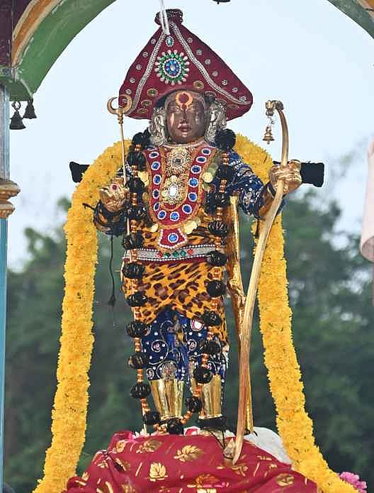 வேடன் வேடத்தில் வேடமூா்த்தி சண்முகா், முதியவா் வேடத்தில் சண்முகா், சிறப்பு அலங்காரத்தில் வள்ளி நாயகியாா்.