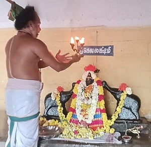 திருக்கோடிக்காவலில் உள்ள திருக்கோடீசுவரா் கோயிலில் உள்ள கஜலட்சுமிக்கு நடைபெற்ற சொா்ணாபிஷேகம்