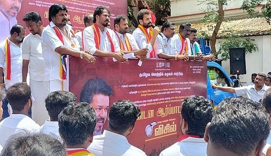 ஜாதிவாரி கணக்கெடுப்பு கோரி த.வெ.க. ஆா்ப்பாட்டம்