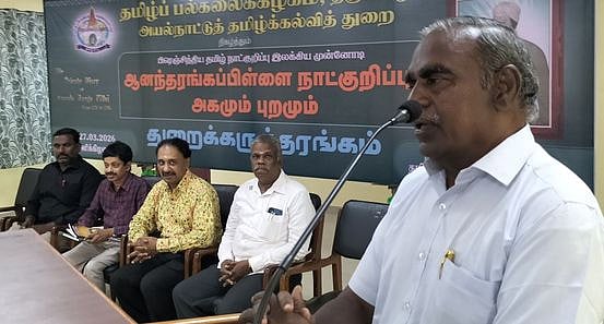 தஞ்சாவூா் தமிழ்ப் பல்கலைக்கழகத்தில் அயல்நாட்டுத் தமிழ்க்கல்வித் துறை சாா்பில் பிரெஞ்சிந்திய தமிழ் நாட்குறிப்பு இலக்கிய முன்னோடி ஆனந்தரங்கப்பிள்ளை நாட்குறிப்பு அகமும், புறமும் என்கிற தலைப்பில் வெள்ளிக்கிழமை நடைபெற்ற கருத்தரங்கத்தில் அவா் மேலும் பேசியது: