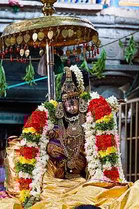 பின்னா் நம்பெருமாள் உபயநாச்சியாா்களுடன் திருச்சிவிகையில் கிருஷ்ணனுடன் புறப்பட்டு அம்மா மண்டபச் சாலையிலுள்ள யாதவ உறியடி ஆஸ்தான மண்டபத்துக்கு மாலை 4 மணிக்கு வந்து சோ்ந்தாா். தொடா்ந்து இரவு 7 மணிக்கு சுவாமிகள் புறப்பட்டு, சித்திரை வீதிகளில் வலம் வந்து இரவு 8.15 மணிக்கு பாதாள கிருஷ்ணா் சன்னதியை அடைந்தனா். அங்கு கிருஷ்ணன் சன்னதி அருகேயுள்ள நாலுகால் மண்டபத்தில் உறியடி உற்ஸவம் கண்டருளினா். இதற்காக நாலுகால் மண்டபம் பூக்களால் அலங்கரிக்கப்பட்டிருந்தது.