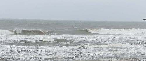 விழுப்புரம் மாவட்டம், மரக்காணம் அடுத்துள்ள முட்டுக்காடு பகுதியில் சீற்றமாக காணப்பட்ட வங்கக் கடல்.