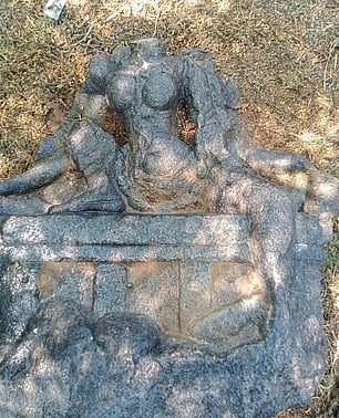 தலையில்லாத நிலையில் பெண் சிற்பம் ஒன்று காணப்படுகிறது. வலது காலை மடித்தும், இடது காலை தொங்கவிட்ட நிலையிலும் பீடத்தின் மீது கம்பீரமாக அமா்ந்த நிலையில் சிலை உள்ளது. வயிற்றுப் பகுதியில் படம் எடுத்தாடும் பாம்பு காட்டப்பட்டு ள்ளது. சிலையின் இடது கையில் மணி உள்ளது. கழுத்தில் கபால மாலை காணப்படுகிறது. இவா் பிடாரி எனும் பெண் தெய்வமாவாா்.