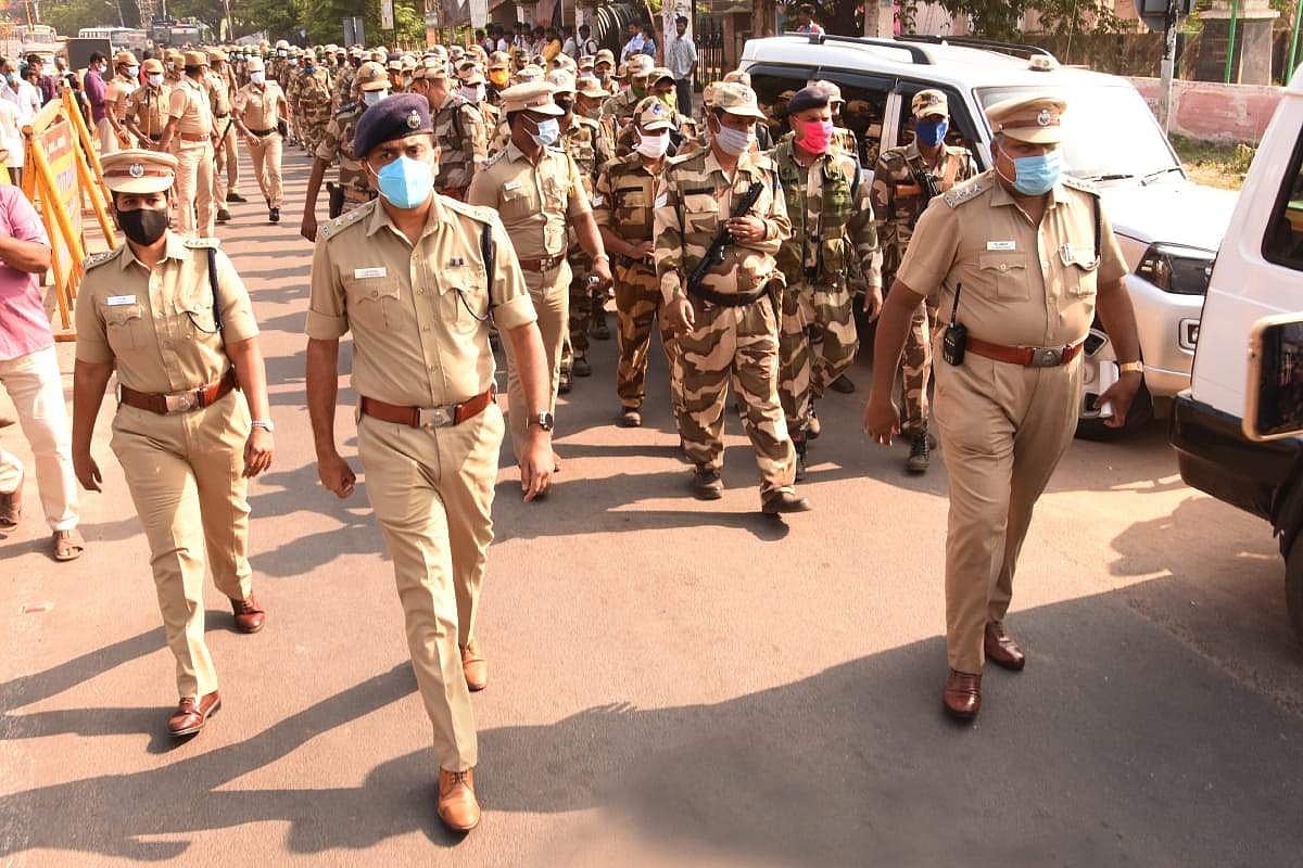 துணை கண்காணிப்பாளர்கள் க.சாந்தி, ஸ்ரீதரன், மத்திய துணை ராணுவப் படை ஆய்வாளர் பினு மற்றும் ஆயுதப்படை, அதிரடி படை வீரர்கள், ஆயுதப்படை காவல்துறையினர் என 300 காவல்துறையினர் அணிவகுப்பு மேற்கொண்டனர்.