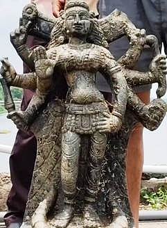 கடலூா் மாவட்டம், சிதம்பரம் அடுத்த புவனகிரி வெள்ளாற்றிலிருந்து சுமாா் 500 ஆண்டுகள் பழைமை வாய்ந்த துா்கை அம்மன் கல் சிலை கண்டெடுக்கப்பட்டது.