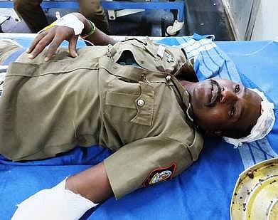 மருத்துவமனையில் சிகிச்சை பெறும் காவலர் ஜெயராமன்.