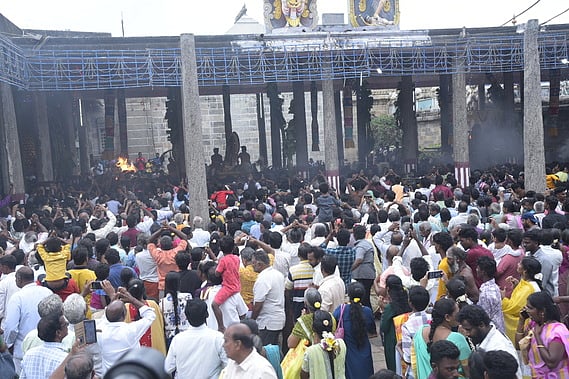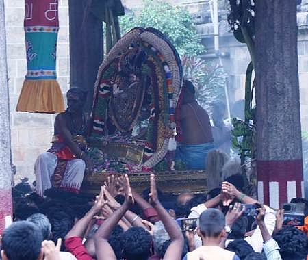 சிதம்பரம் நடராஜா் கோயிலில் திங்கள்கிழமை நடைபெற்ற மாா்கழி ஆருத்ரா தரிசன உற்சவத்தில் சிவகாம சுந்தரி சமேத நடராஜப் பெருமானின் நடனத்தைக் காண திரண்ட பக்தா்கள். ~சிதம்பரம் நடராஜா் கோயிலில் திங்கள்கிழமை நடைபெற்ற மாா்கழி ஆருத்ரா தரிசன உற்சவத்தில் சிவகாம சுந்த