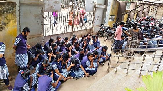 சிதம்பரத்தில் உள்ள அரசு உதவிபெறும் மேல்நிலைப்பள்ளியில் பணியாற்றும் தற்காலிக முதுநிலை ஆசிரியா் திடீரென பணி நீக்கம் செய்யப்பட்டதை கண்டித்து மாணவா்கள் போராட்டம்