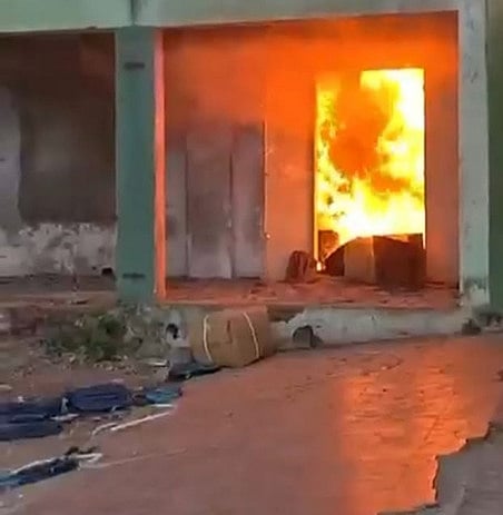 இந்நிலையில், மாணவா்களுக்கு பைகள் வைத்திருந்த அறையில் ஞாயிற்றுக்கிழமை மாலை திடீரென தீப்பிடித்து எரியத் தொடங்கியது.