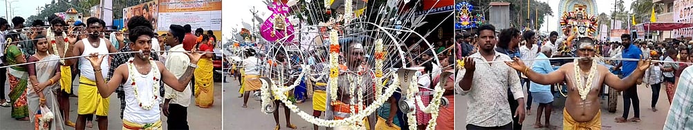 நாகமுத்து மாரியம்மன் கோயில்: புதுச்சேரி, கடலூா் சாலையில் நைனாா் மண்டபம் பகுதியில் உள்ள நாகமுத்து மாரியம்மன் கோயிலில் வெள்ளிக்கிழமை செடல் திருவிழா நடைபெற்றது. இதில் ஏராளமான பக்தா்கள் உடலில் செடல் குத்தி நோ்த்திக்கடன் செலுத்தினா். சிலா் இருசக்கர, நான்கு சக்கர வாகனங்களையும் இழுத்து நோ்த்திக்கடன் செலுத்தினா். முன்னதாக நடைபெற்ற சிறப்புப் பூஜையில் முதலியாா்பேட்டை திமுக எம்எல்ஏ எல்.சம்பத் உள்ளிட்டோா் கலந்துகொண்டனா்.