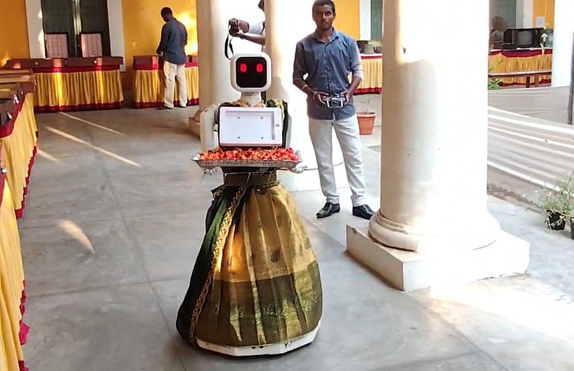 In Puducherry, Robot Nila captivated voters by welcoming them with roses.